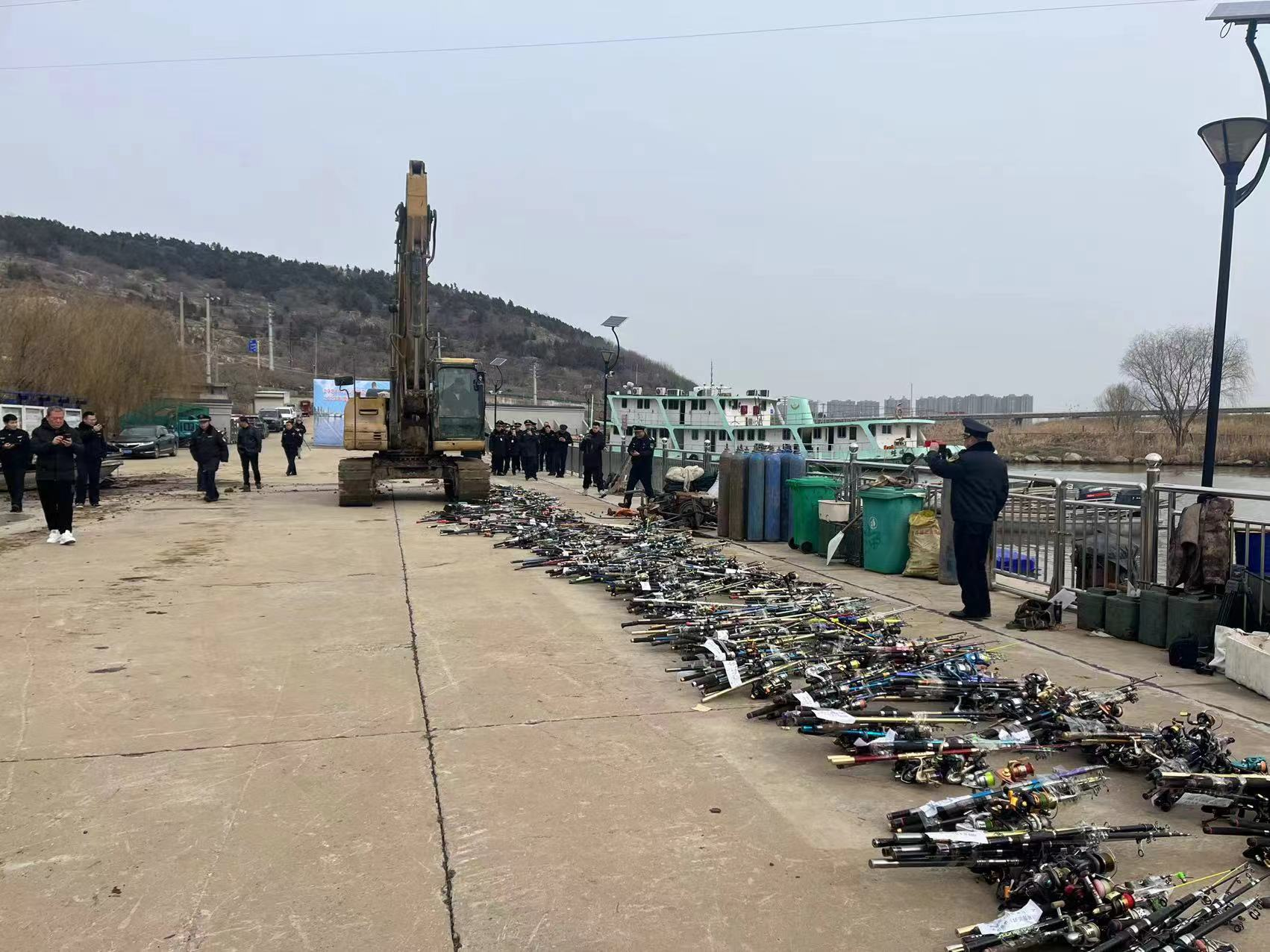 當天,縣漁政執法部門組織工作人員并動用大型機械,對各類違法、禁用船只和漁具進行粉碎作業,共計銷毀涉漁“三無”船舶和排筏81艘、網具199條、電捕魚器34臺、釣具830個,不僅進一步震懾了各類破壞水生生物資源的違法行為,更引導群眾增強保護母親河的思想自覺、行動自覺,為淮河流域生態保護和高質量發展保駕護航。