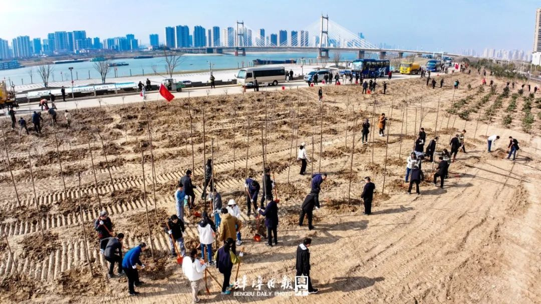 3月的蚌埠春光明媚,淮河兩岸處處是萬物萌發、生機盎然的景象。一到植樹現場,黃曉武、馬軍就拿起鐵鍬投入到勞動中。大家兩三人一組,揮鍬鏟土、培土圍堰、提水澆灌,細致完成每一道工序,淮河岸邊一派熱火朝天的勞動場景。經過一個小時的緊張勞動,1800余株桂花、蠟梅、楸樹等樹木迎風挺立,“靚淮河”又增添了一道美麗風景。