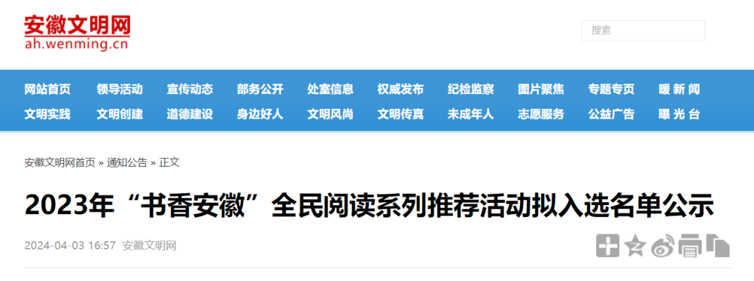 附件:2023年“書香安徽”全民閱讀系列推薦活動擬入選名單