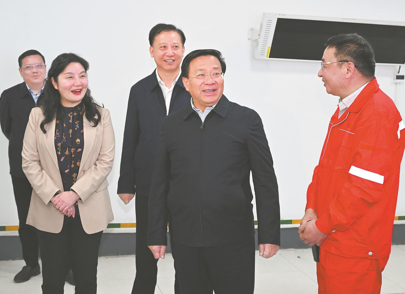 4月12日,省委書記韓俊在蚌埠市萬豪能源公司詳細(xì)了解科技創(chuàng)新、產(chǎn)品應(yīng)用等情況,仔細(xì)詢問生物天然氣液化及碳捕集技術(shù)工藝流程。記者 楊竹 攝