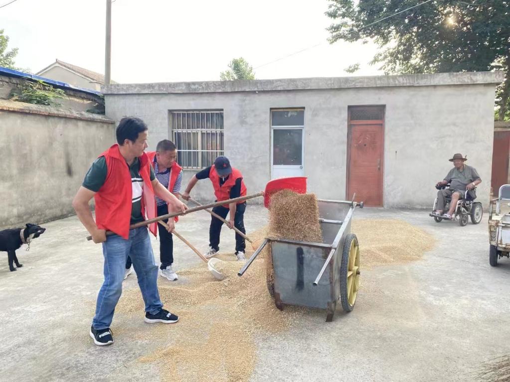 志愿服務隊先后去了朱崗村和何巷社區,在村干部的陪同下走進兒女不在身邊以及勞動力少的困難農戶家,幫助他們晾曬剛收割回來的小麥。