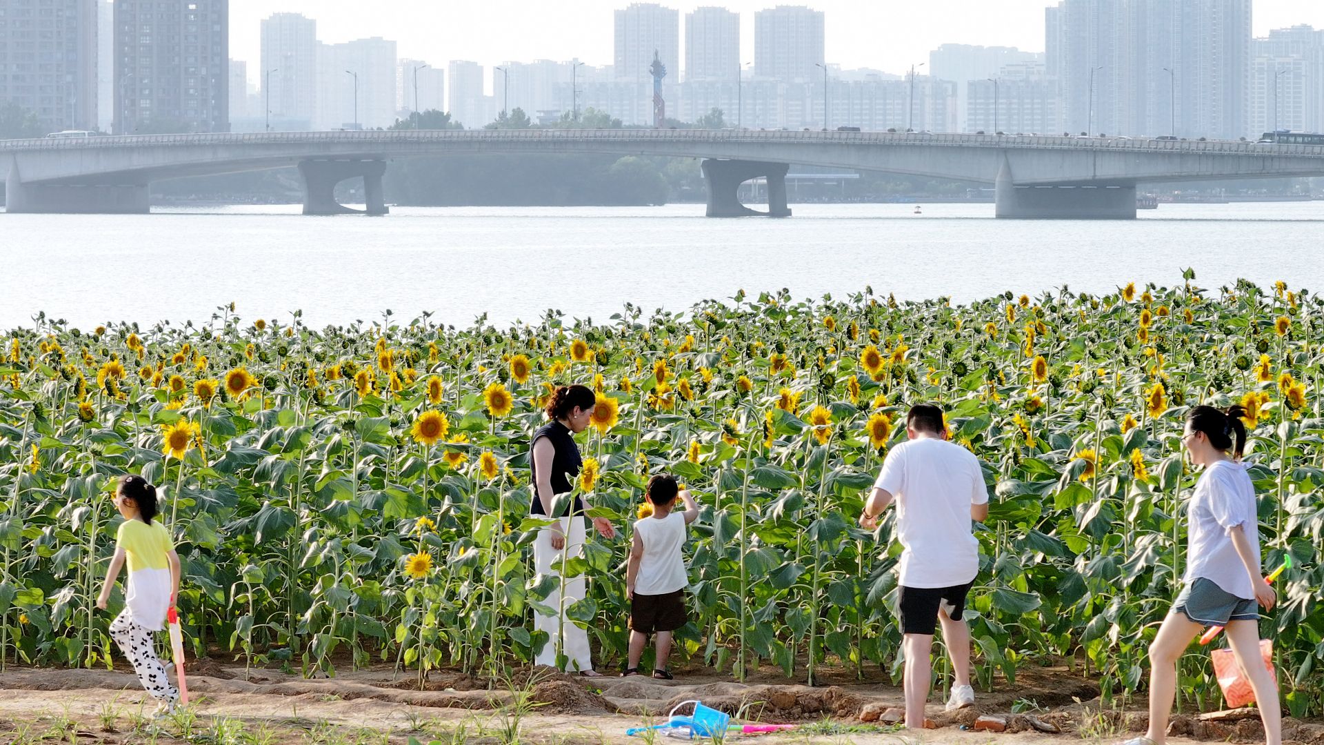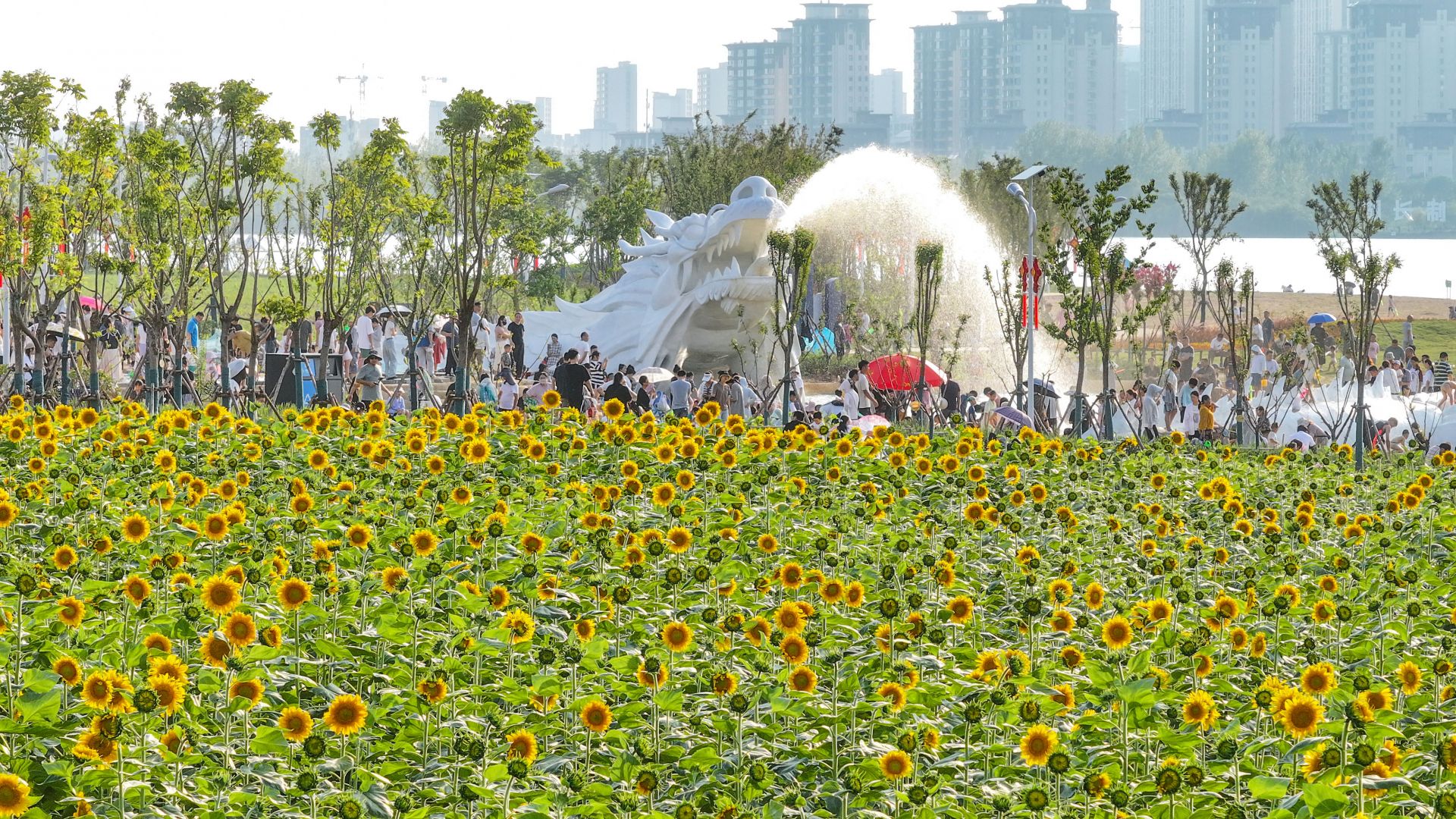 蚌埠文明網(wǎng)訊 6月30日,龍子湖東南岸“小白龍”東側(cè)大片向日葵競(jìng)相開放,吸引眾多市民前來打卡。