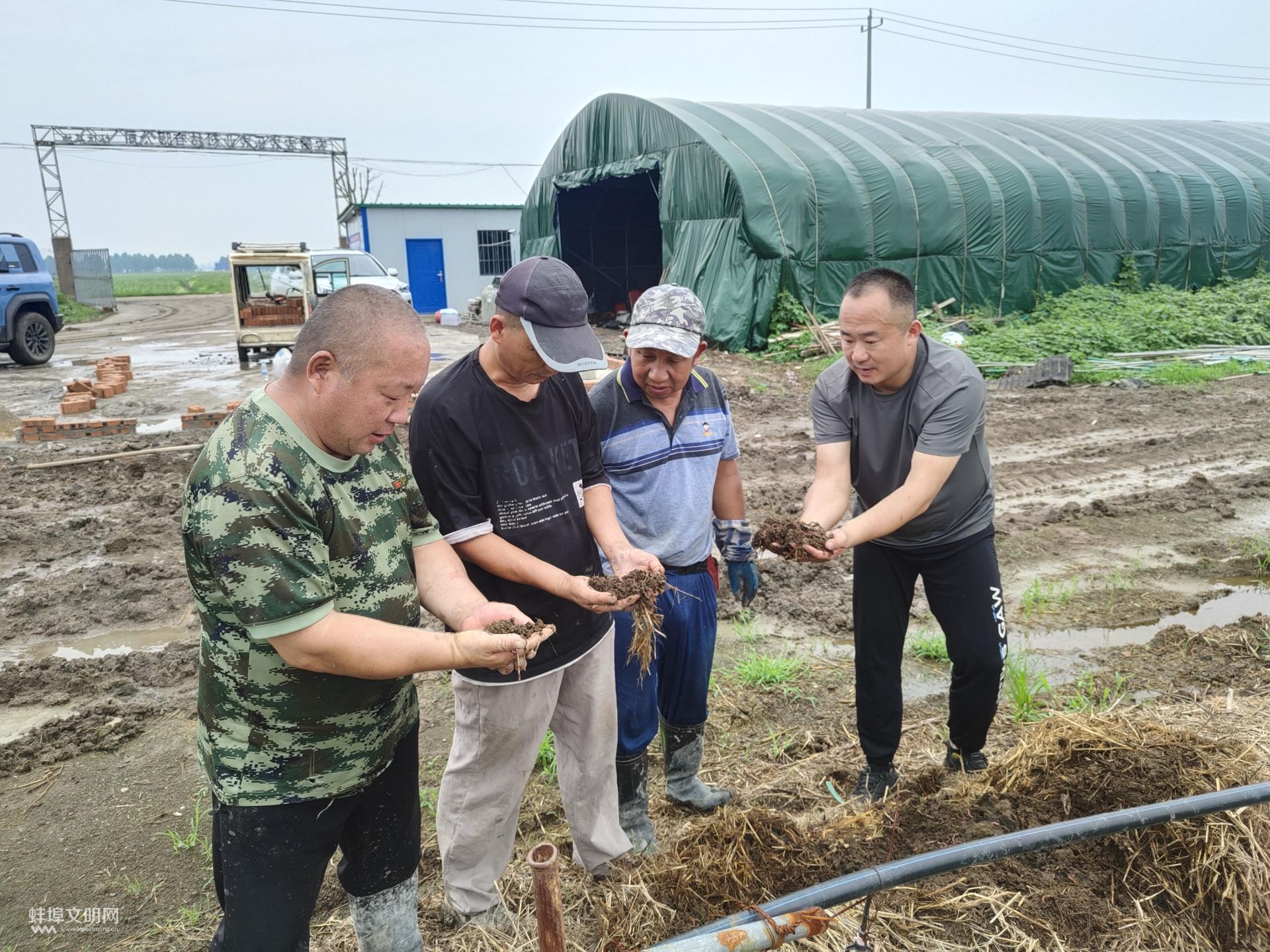 蚯蚓養(yǎng)殖、玉米、菌菇種植協(xié)同處置利用項目(安徽農(nóng)農(nóng)樂農(nóng)業(yè)科技有限公司),負(fù)責(zé)人焦保楊(右一)指導(dǎo)養(yǎng)殖工人學(xué)習(xí)蚯蚓養(yǎng)殖技術(shù)。