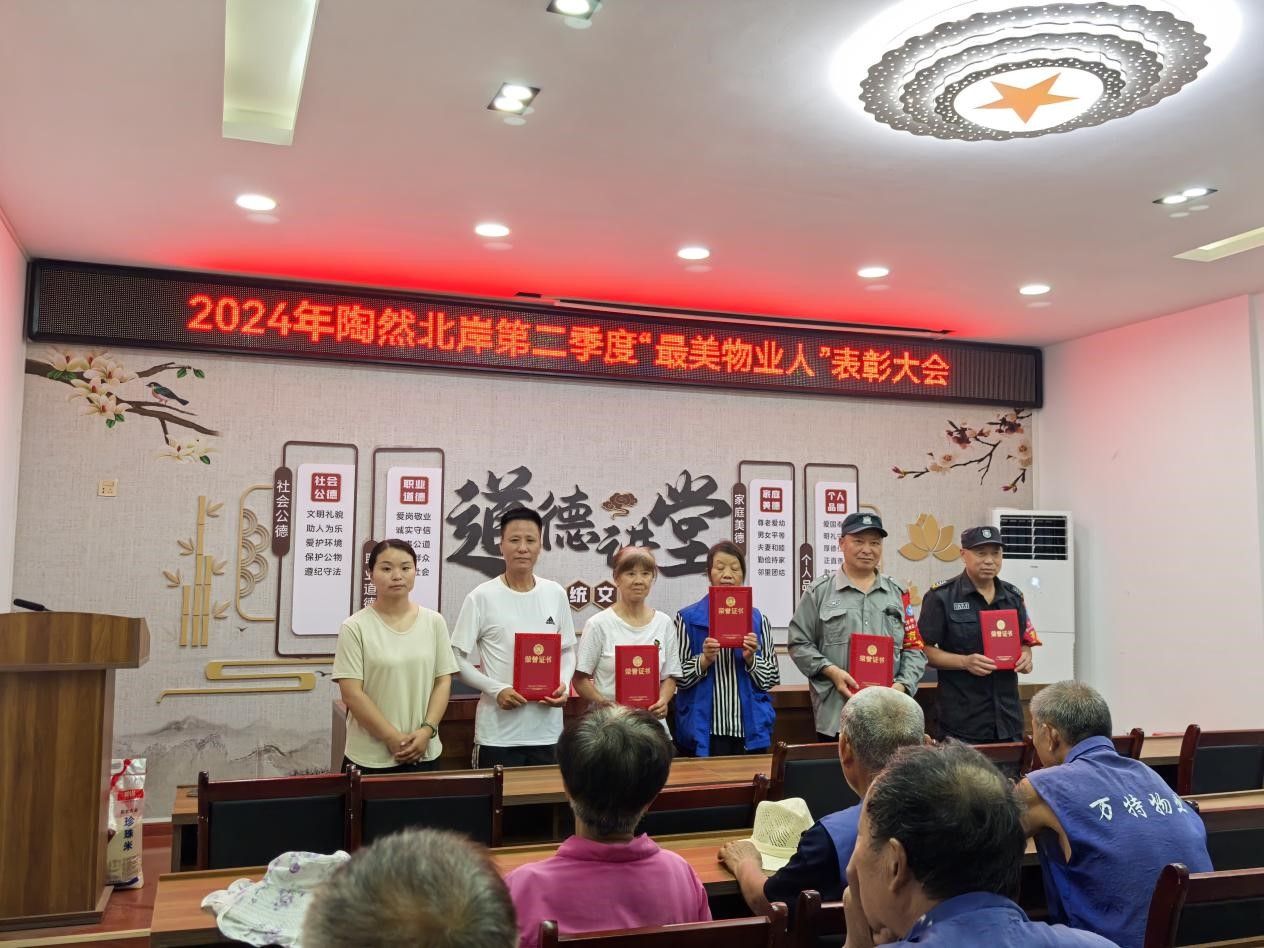 為進一步提升轄區物業服務水平,致力于實現黨建引領更有力、物業服務更優質、小區環境更舒適,7月30日下午,陶然北岸社區召開2024年第二季度“最美物業人”表彰大會。
