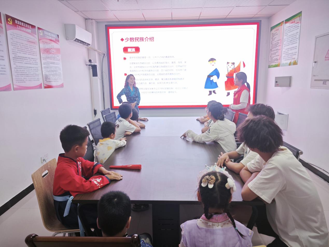 活動(dòng)開(kāi)始,邀請(qǐng)來(lái)自藏族的淮濱街道工作人員。向我們介紹了藏族人民的生活習(xí)慣,民族服飾特點(diǎn)。還教了青少年們,早上好和晚安的藏語(yǔ)說(shuō)法,讓青少年們感受到藏族文化的魅力。