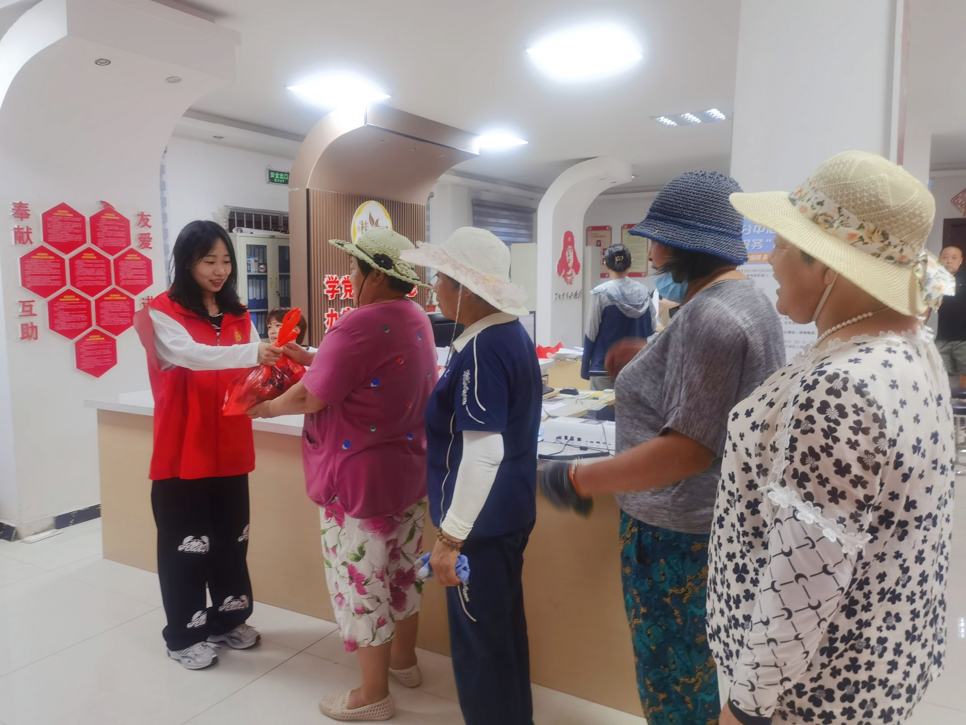 活動中,社區工作人員詳細詢問了職工們的工作和生活情況,叮囑他們天氣炎熱要注意防暑降溫。隨后,將滿載關懷的防暑物資分發給了社區環衛工人和安保人員并向他們普及了防暑降溫的知識,感謝他們不畏酷暑、盡職盡責地為社區的環境衛生和安全做出貢獻。