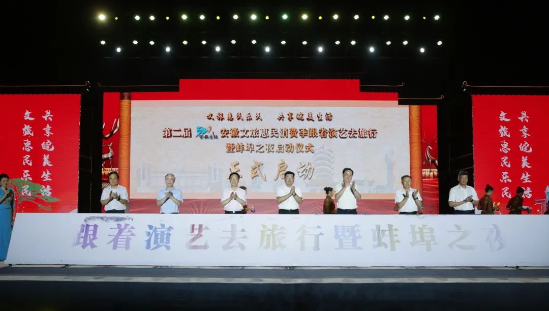 蚌埠文明網訊(記者 李揚 陳昂 文/圖)8月22日晚,第二屆“520”安徽文旅惠民消費季——跟著演藝去旅行暨蚌埠之夜在中國(蚌埠)古民居博覽園啟動。市委書記黃曉武在啟動儀式上致辭,文化和旅游部產業發展司副司長馬力,省文化和旅游廳副廳長、省廣播電視局局長朱訓義,安徽演藝集團有限責任公司黨委書記、董事長張健,副總經理陳飚,安徽廣播電視臺副臺長彭以學,安徽旅游集團黨委副書記、總經理邱軍,安徽廣電傳媒集團產業集團常務副總經理苗峰,安徽省文投公司副總經理范仁平,市領導倪建勝、郭鵬、潘君齊、徐偉紅、荀異然等出席。
