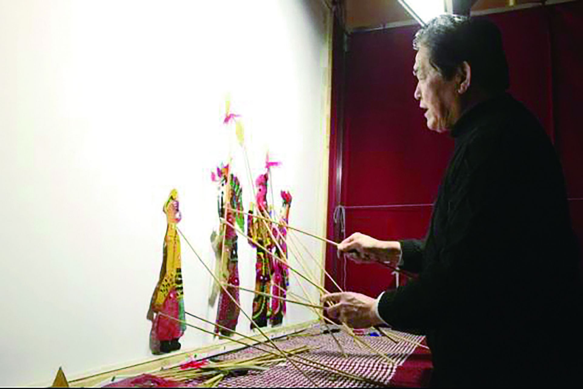 安徽省非物質文化遺產余家皮影戲第三代傳承人余家坤在進行皮影表演。