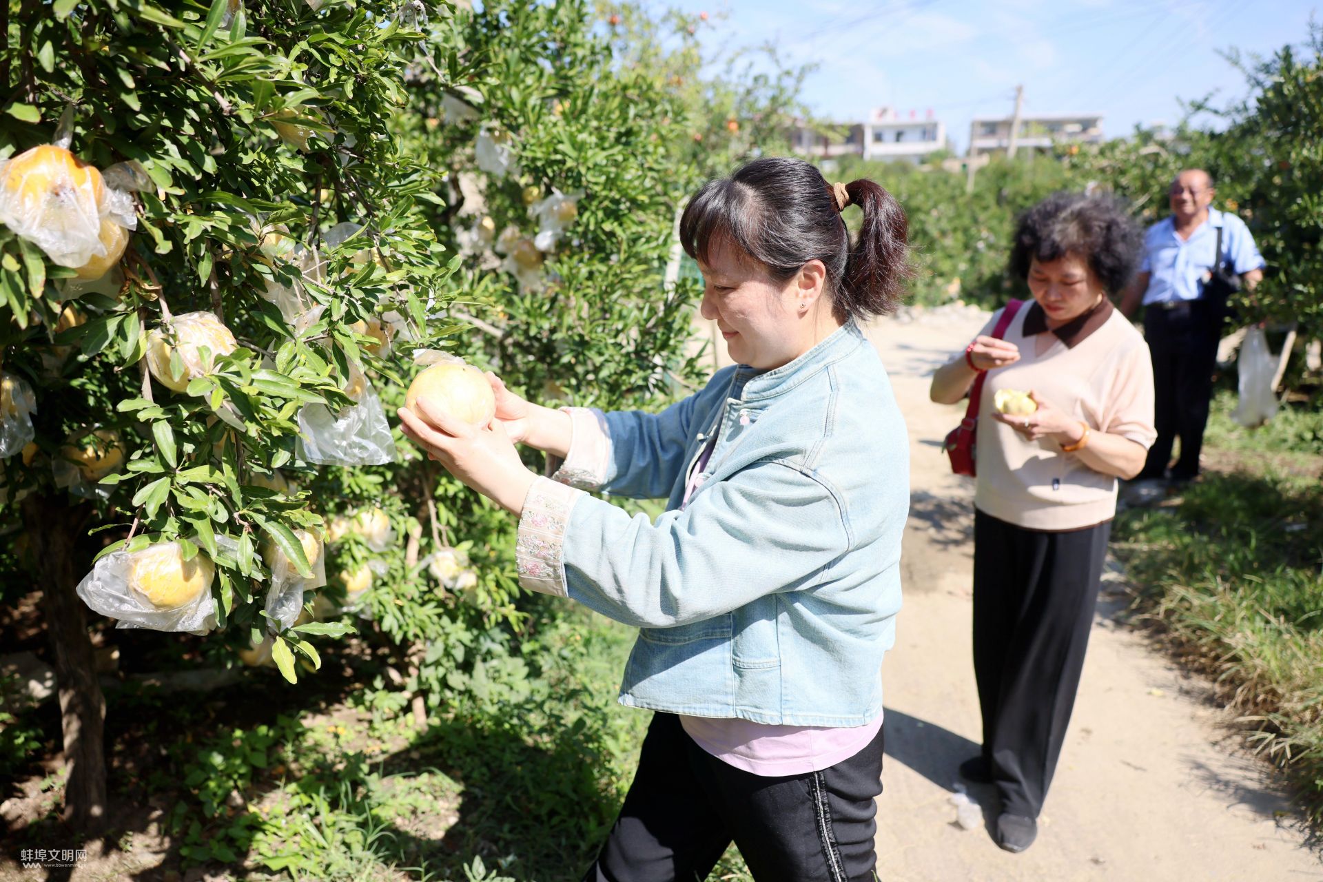 趁著國(guó)慶假期,徐州游客楊晨帶著父母來(lái)到禹會(huì)區(qū)長(zhǎng)青鄉(xiāng)下洪村采摘石榴。